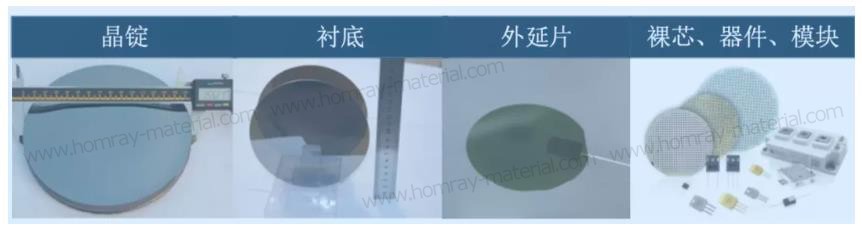 Similar to other power semiconductors, the SiC industry chain encompasses crystal growth – substrate preparation – epitaxy – design – fabrication – packaging.