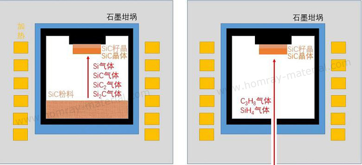 In the crystal growth stage, unlike the Czochralski method commonly used for monocrystalline silicon, silicon carbide is mainly produced by the Physical Vapor Transport (PVT) method, also known as the modified Lely method or seeded sublimation method, with the High-Temperature Chemical Vapor Deposition (HTCVD) method serving as a supplement. The key steps generally include: