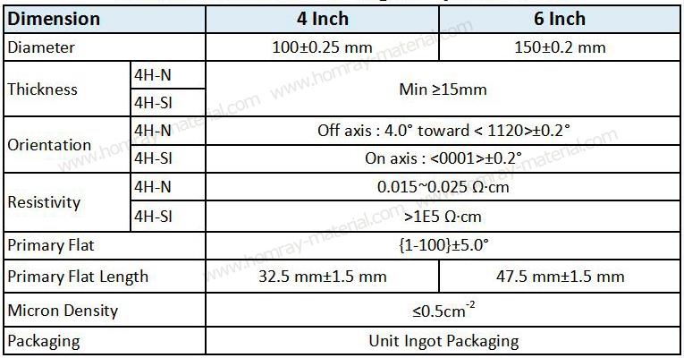 类型:4H-N导电型;4H-SI半绝缘型